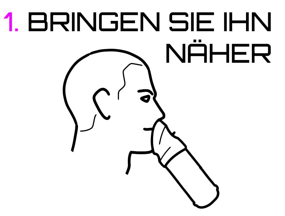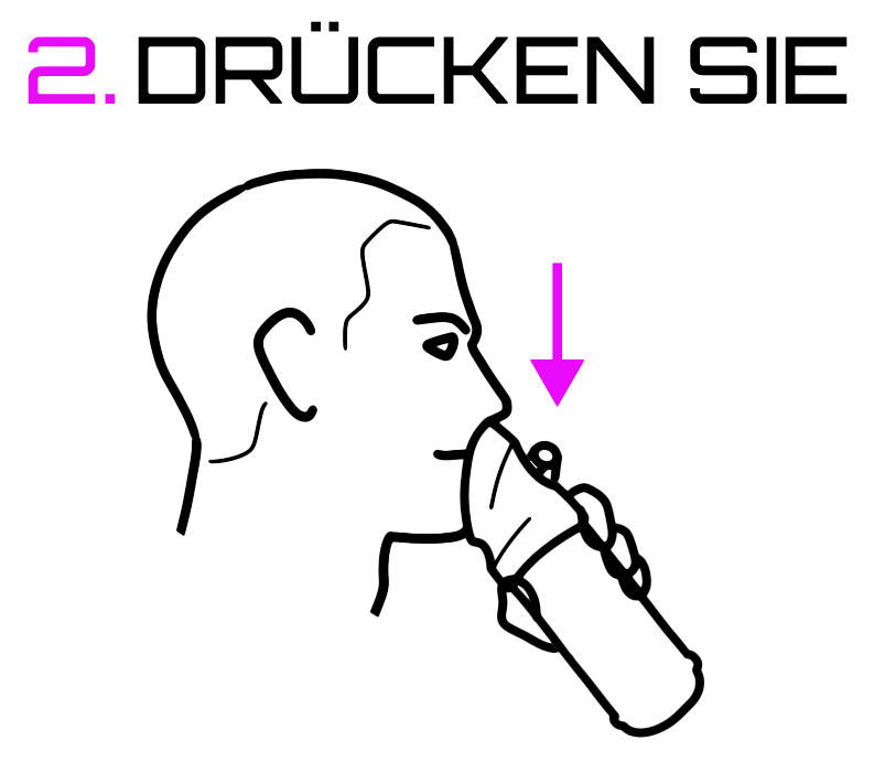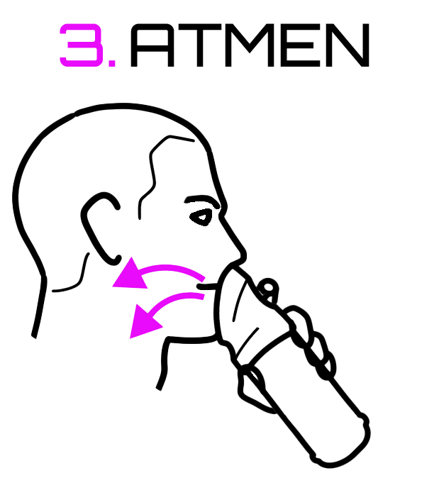 Drücken Sie den Abzug und atmen Sie mit offenem Mund. Die Nase bleibt an der Maske angelehnt.