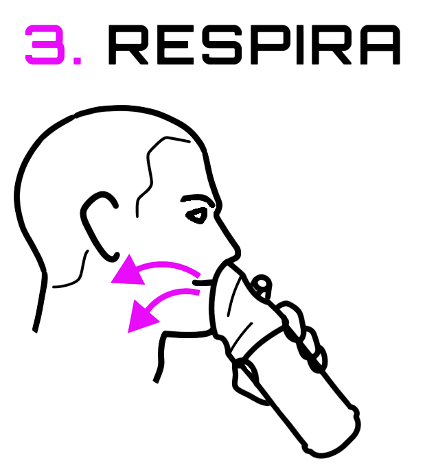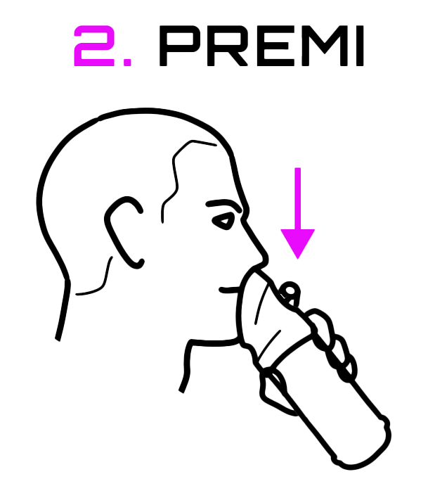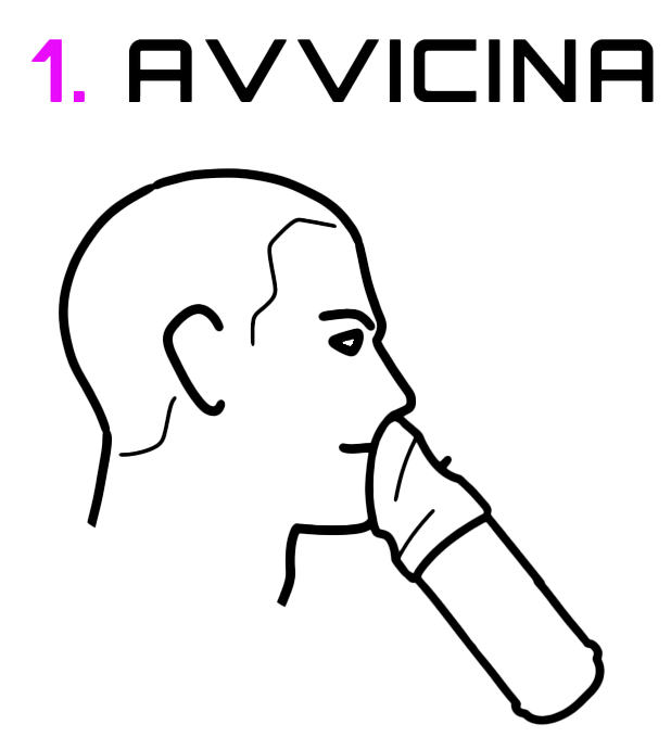 Premere il grilletto e respirare a bocca aperta. Il naso rimane appoggiato alla mascherina.